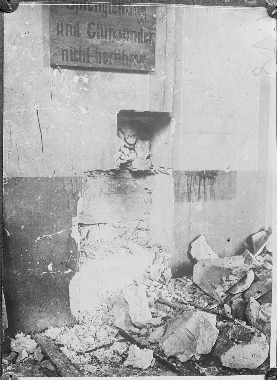 Un trou destiné à contenir des explosifs a été creusé par les sapeurs allemands avant leur départ de la ville, au début du mois d'octobre 1918.