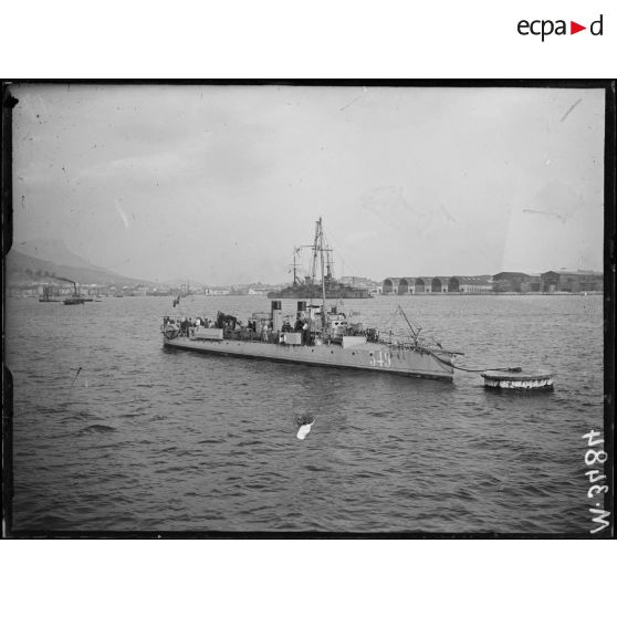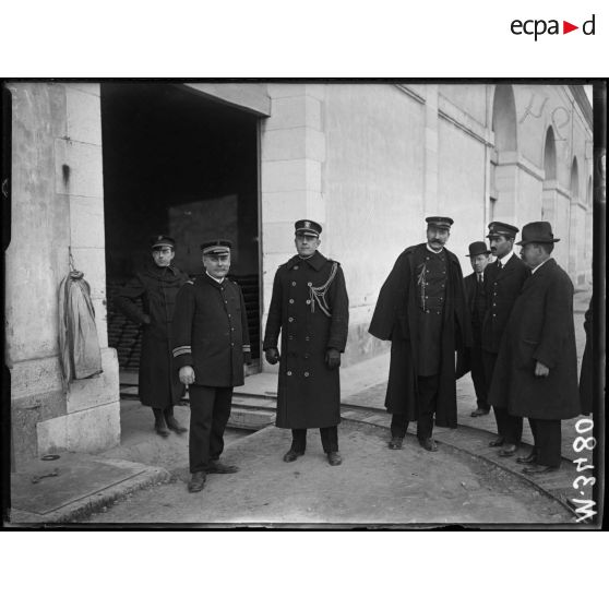 - Dans le port de Toulon, les journalistes américains accompagnés par des attachés de la marine américaine visitent le port et la poudrerie de Milhaud. Dans la pyrotechnie, les journalistes voient les dépôts d'obus de gros calibre fabriqués aux Etats-Unis. Les tirailleurs sénégalais sont chargés de la manutention des obus qui sont chargés dans des trains en partance pour le front. Le commandant Sayler responsable de la pyrotechnie de Milhaud pose aux côtés du capitaine de frégate Smith ;