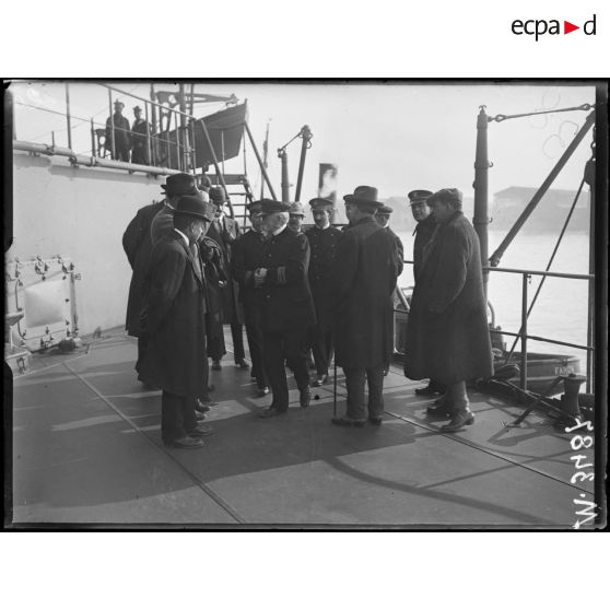 Toulon, arrivée de la mission de journalistes américains sur le "Provence".