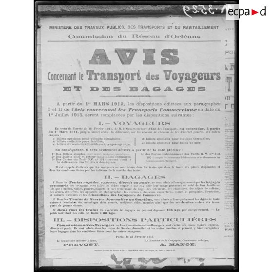 - L'arrêté concernant le transport des voyageurs et des bagages sur le réseau Paris-Orléans.