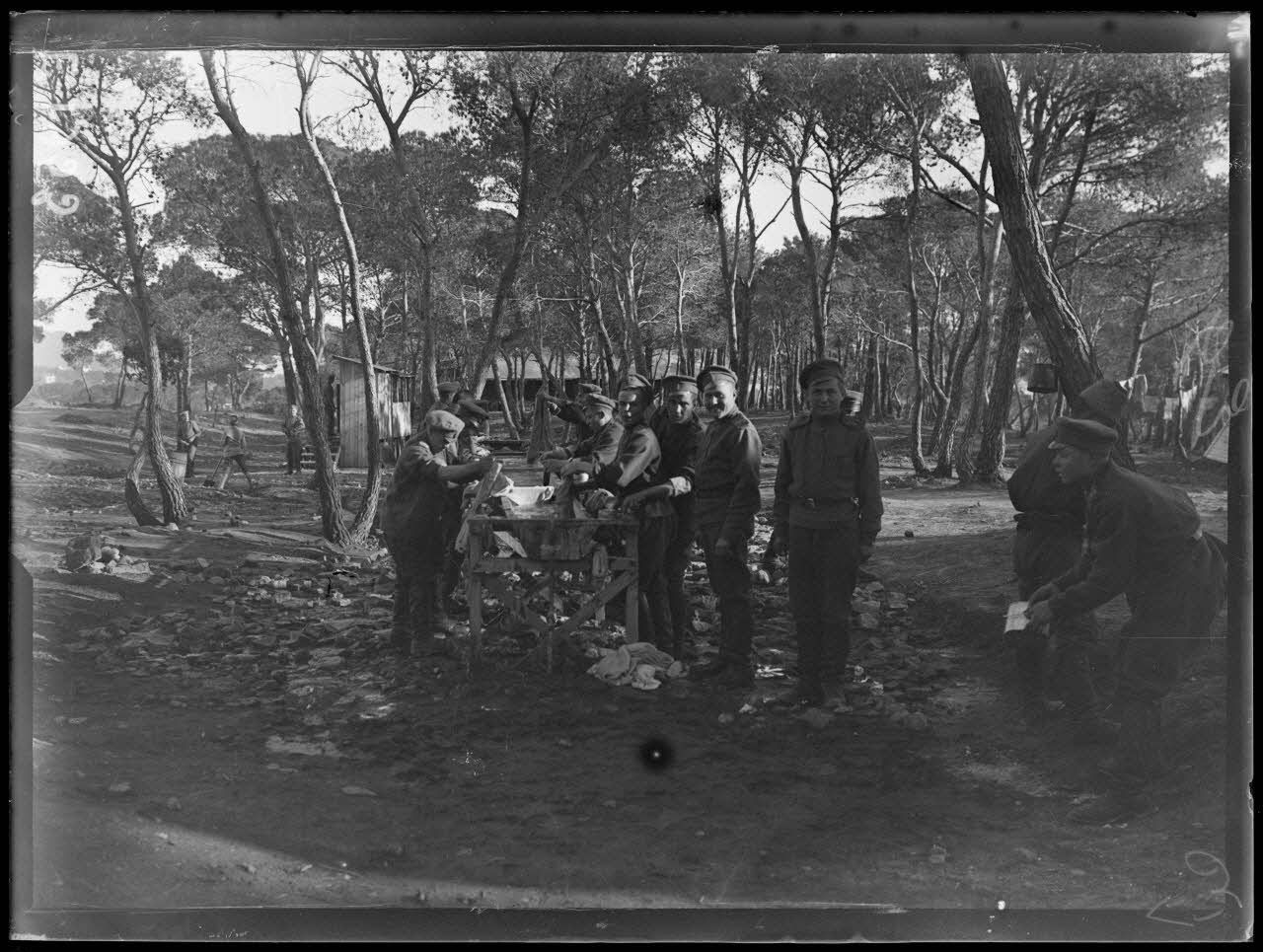 Vie quotidienne des soldats russes et malgaches dans le camp Caudrelier, situé à l'est de Saint-Raphaël, sur la route de Boulouris.