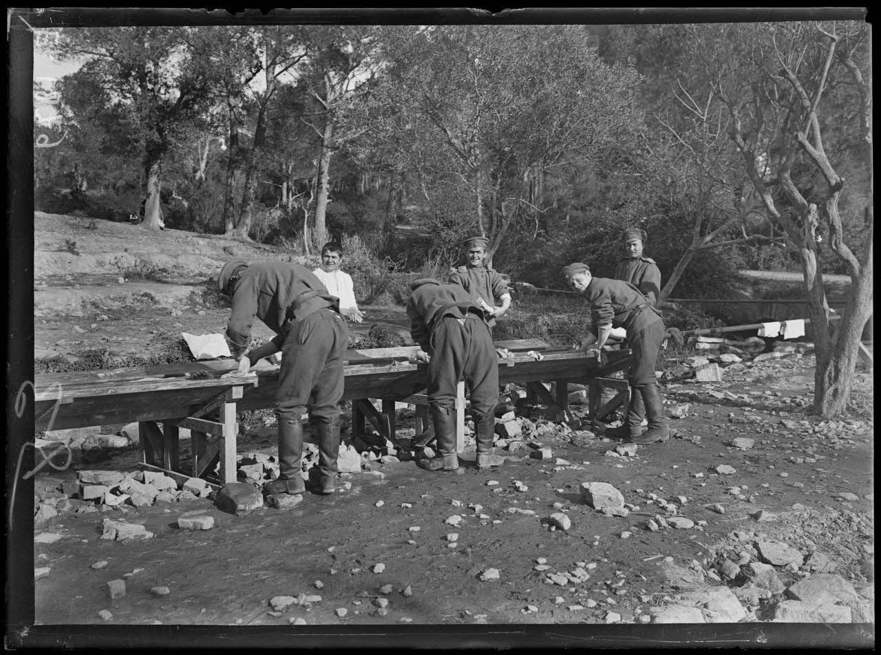 Saint-Raphaël (Var). Camp Caudrelier. Soldats russes au lavoir. [légende d'origine]