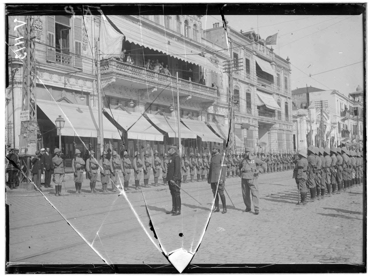 Le 27 août 1916, le général de l'armée d'Orient, Maurice Sarrail, reçoit Essad Pacha à Salonique près du front balkanique. Le général Sarrail passe en revue ses troupes et remet une décoration à un officier durant une cérémonie officielle puis ramène la personnalité en visite jusqu'à ses appartements à l'hôtel.