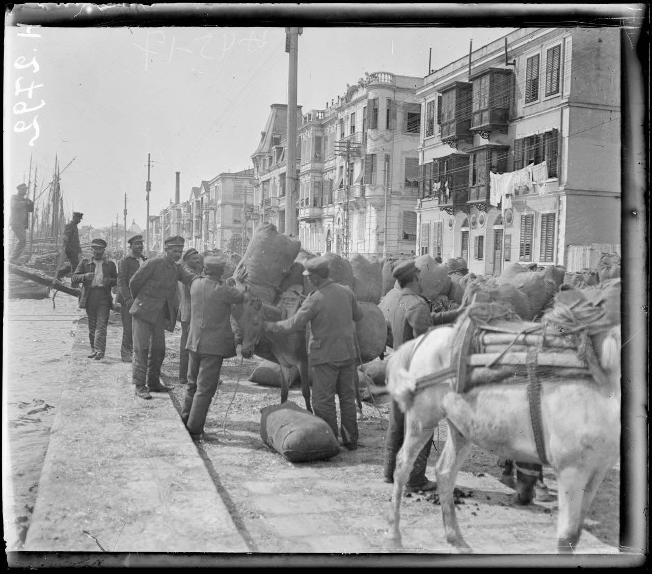 Le 25 mai, de la paille hachée arrive au quai (à destination des contingents grecs), où ont accosté de petites embarcations.