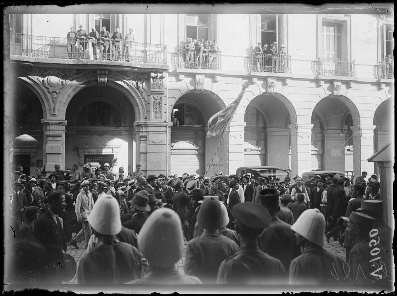 Salonique.Défilé des révoltés devant le Quartier Général.