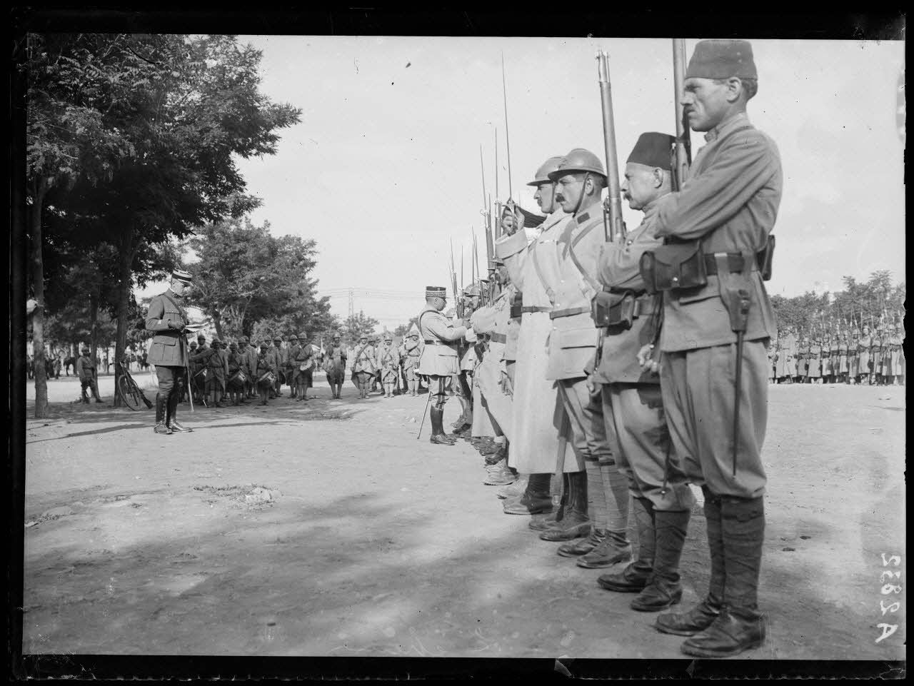 Salonique. Au Champ de Mars, remise de décorations, les troupes défilent devant le Général Guillaumat.