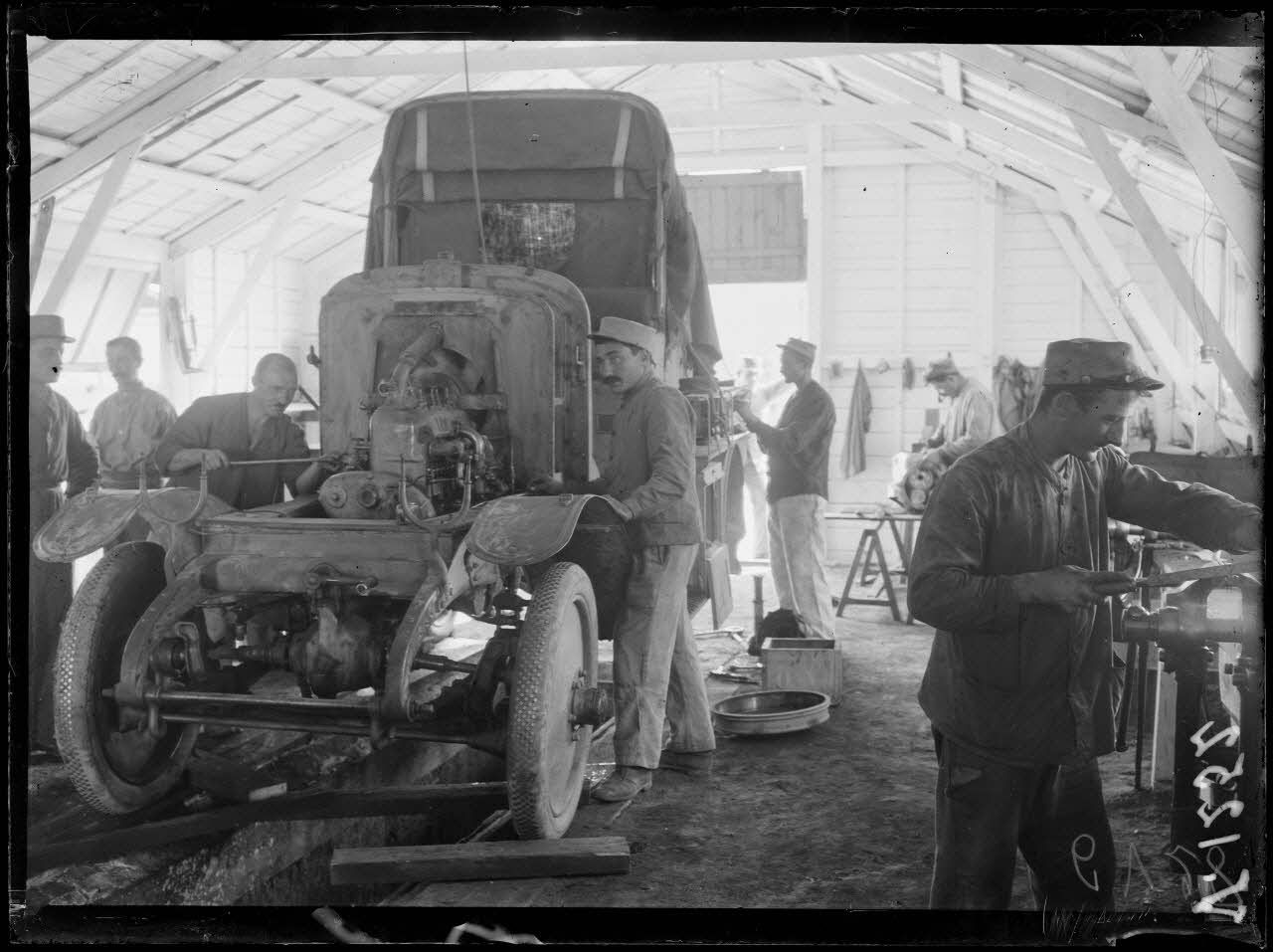 Salonique. Aviation. Atelier de réparation autos. [légende d'origine]
