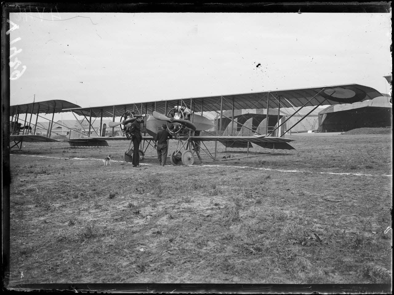Au camp d'aviation de Salonique, commandé par le capitaine Lucier, un atelier s'occupe de réparer des hydravions (coques, toiles et moteurs) qui amerrissent non loin de la plage. Des engins de l'aviation sont à terre dans les hangars tels qu'un avion G4 Caudron-Anzani à deux moteurs, un avion F-40 muni de fusées Le Prieur utilisées contre les zeppelins et l'appareil Voisin qui a bombardé la ville de Xanthi sous les ordres du capitaine Lucier. Des munitions et différents types d'obus sont également entreposés dans le parc d'aviation.