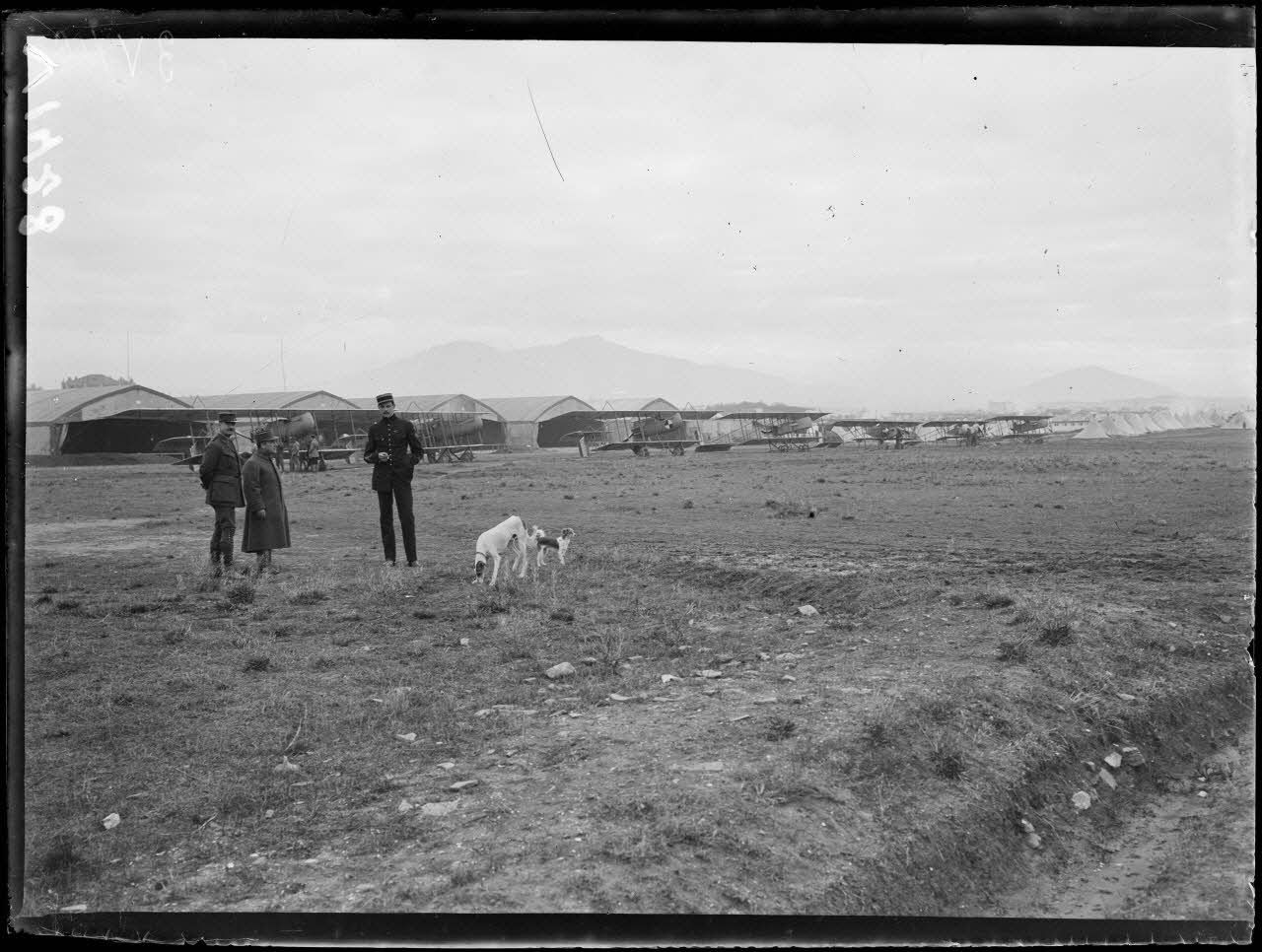 Au camp d'aviation de Salonique, commandé par le capitaine Lucier, un atelier s'occupe de réparer des hydravions (coques, toiles et moteurs) qui amerrissent non loin de la plage. Des engins de l'aviation sont à terre dans les hangars tels qu'un avion G4 Caudron-Anzani à deux moteurs, un avion F-40 muni de fusées Le Prieur utilisées contre les zeppelins et l'appareil Voisin qui a bombardé la ville de Xanthi sous les ordres du capitaine Lucier. Des munitions et différents types d'obus sont également entreposés dans le parc d'aviation.