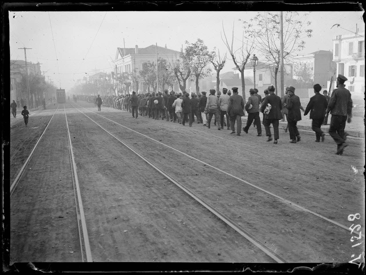 Salonique. Défilé des volontaires grec, boulevard de la Révolution. [légende d'origine]