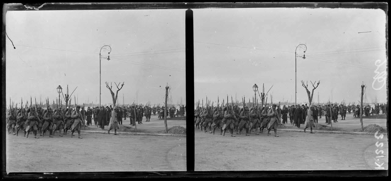Salonique. Les serbes nouvellement débarqués ou recueillis aux portes de Salonique se rendent à leur consulat.