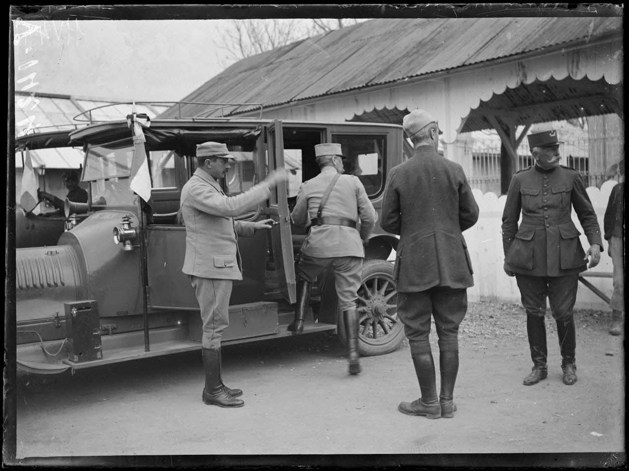 Salonique. Le général Sarrail et le général Roques quittent l'hôpital de la Princesse Marie. Départ de l'auto.