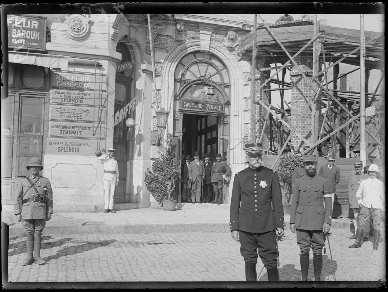 Le 27 août 1916, le général de l'armée d'Orient, Maurice Sarrail, reçoit Essad Pacha à Salonique près du front balkanique. Le général Sarrail passe en revue ses troupes et remet une décoration à un officier durant une cérémonie officielle puis ramène la personnalité en visite jusqu'à ses appartements à l'hôtel.