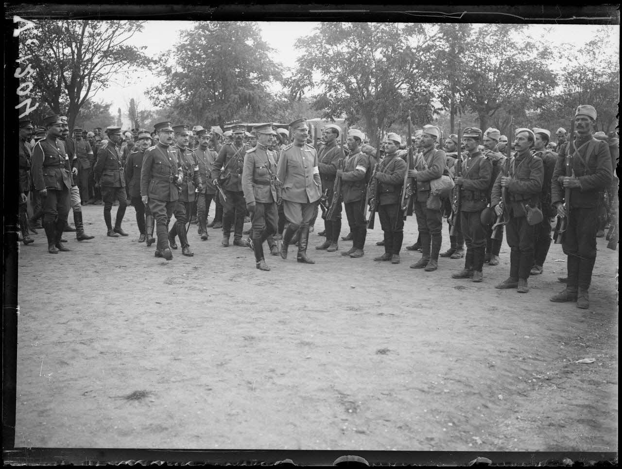 Salonique. Le général Zimbrakakis et le colonel Christodoulos passant en revue le régiment. Au premier plan, le général Christodoulos.