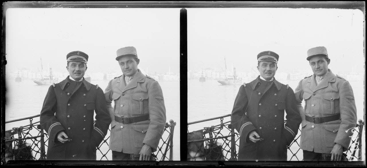 Salonique. Les deux frères Theine. L'un enseigne de vaisseau, l'autre pilote d'un avion Nieuport. [légende d'origine]