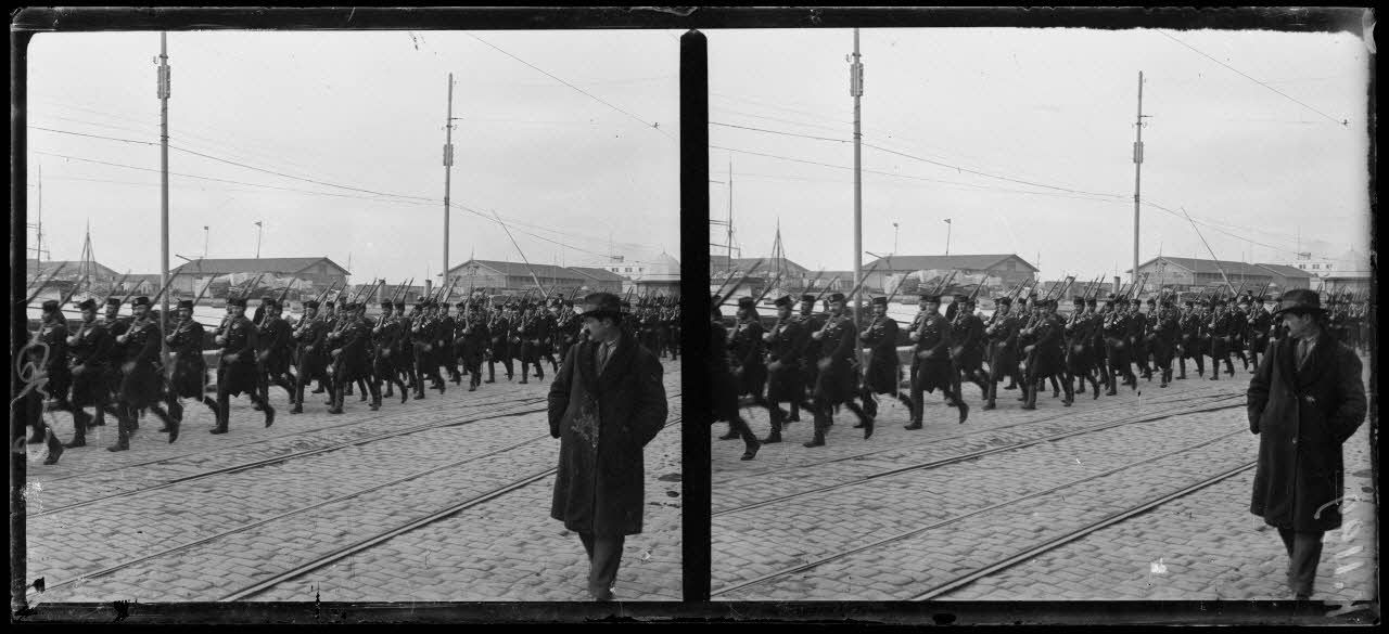 A Salonique, le 3 janvier 1916, une commission parlementaire de la marine s'apprête à partir pour la France, sous le regard de la police grecque et de gendarmes crétois.