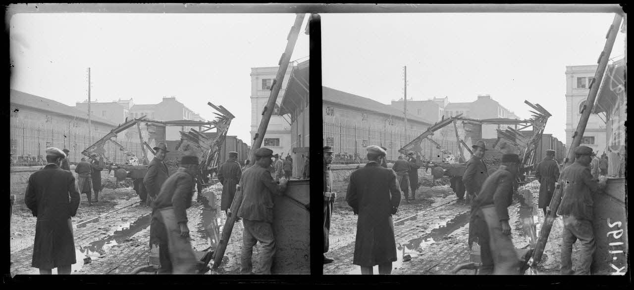 Salonique. Wagon écartelé devant les magasins généraux de la Banque de Salonique.