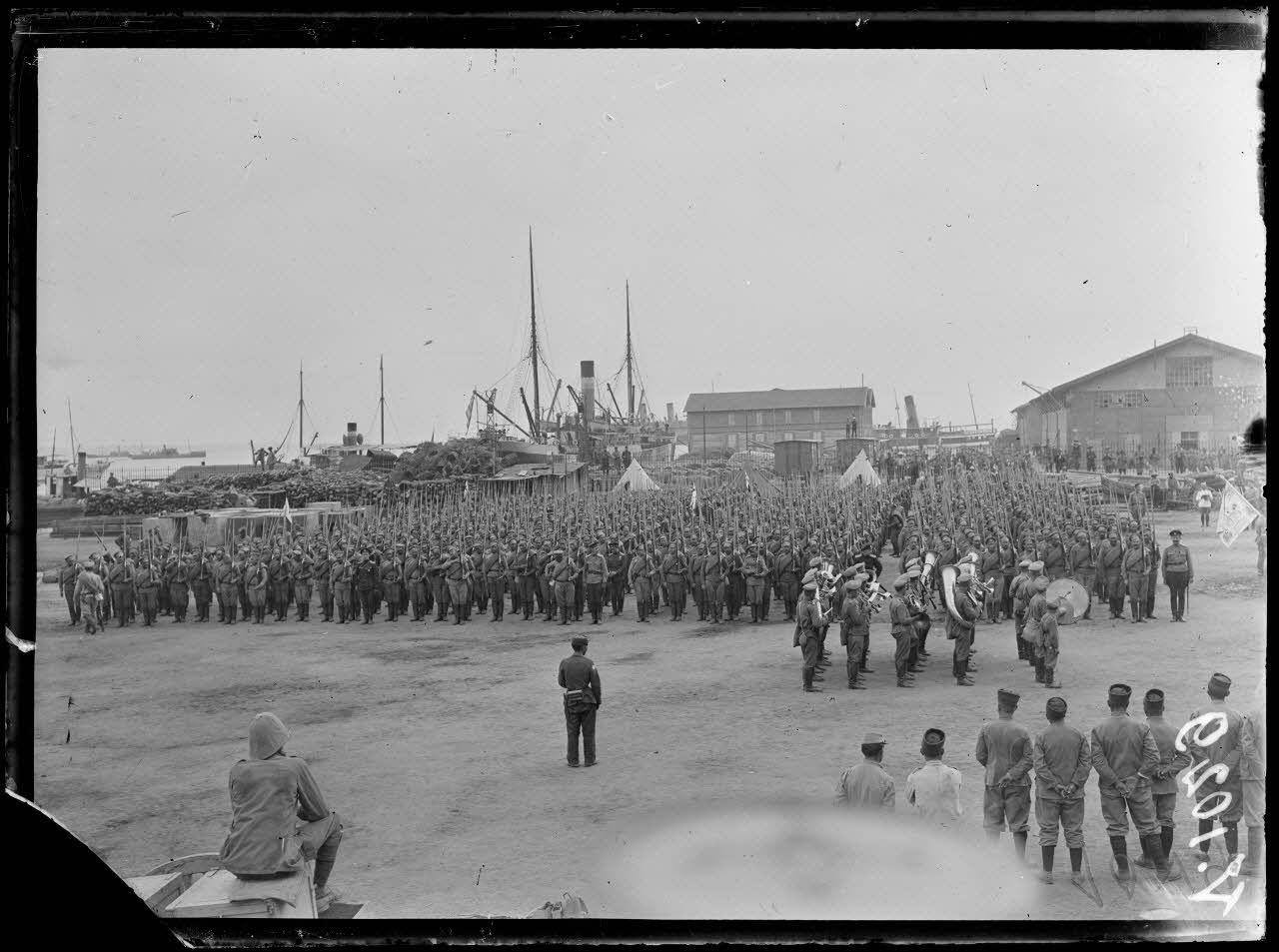 Salonique. Les troupes russes sur les quais. [légende d'origine]