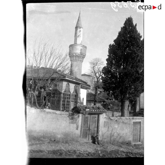 Salonique. Le clocher de Saint Dimitri et la fontaine construite pour l'église alors transformée en Mosquée.
