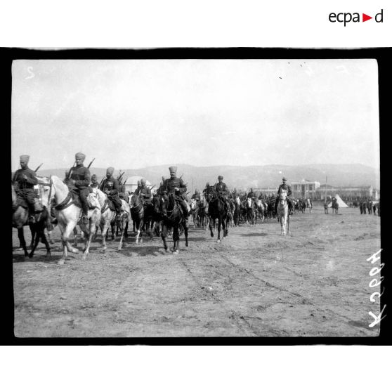 Salonique. Revue du régiment de Spahis Marocains passée par le général Sarrail.