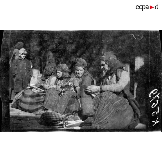 Salonique. Macédoniennes vendant les chaussettes tricotées par elles.
