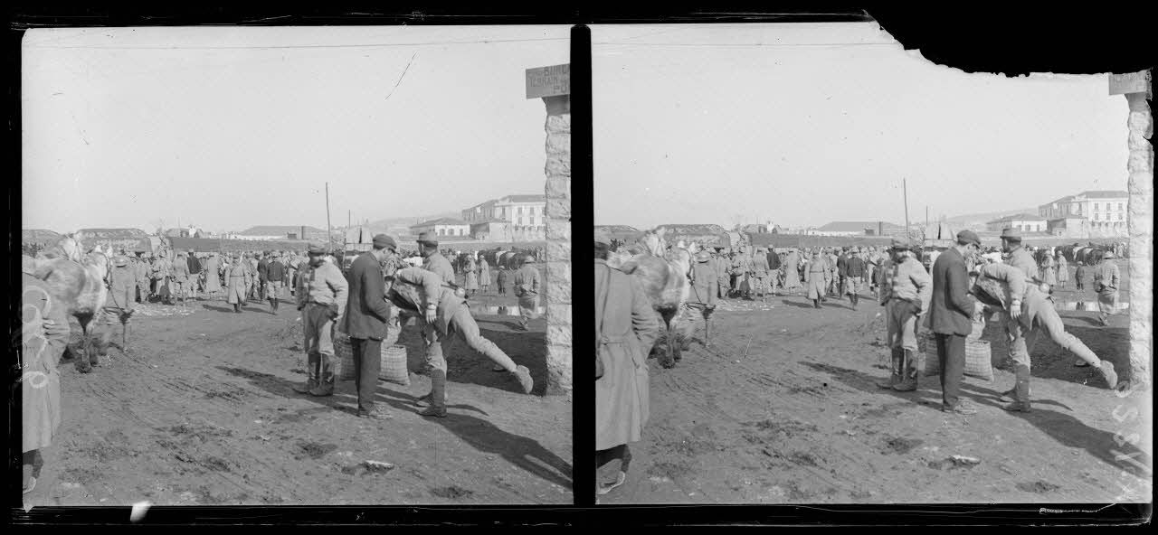 Salonique. Les serbes nouvellement débarqués ou recueillis aux portes de Salonique se rendent à leur consulat.
