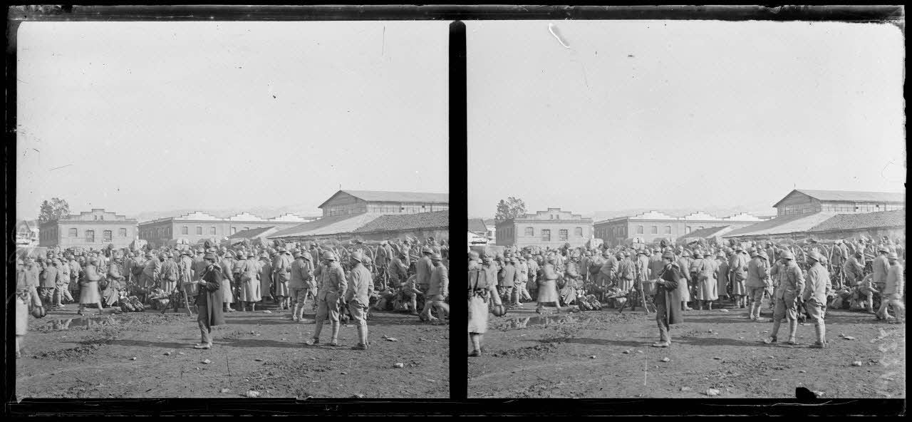 Salonique. Les serbes nouvellement débarqués ou recueillis aux portes de Salonique se rendent à leur consulat.