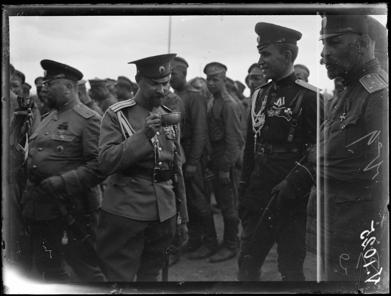 Salonique. Officiers et soldats russes prenant le thé. [légende d'origine]