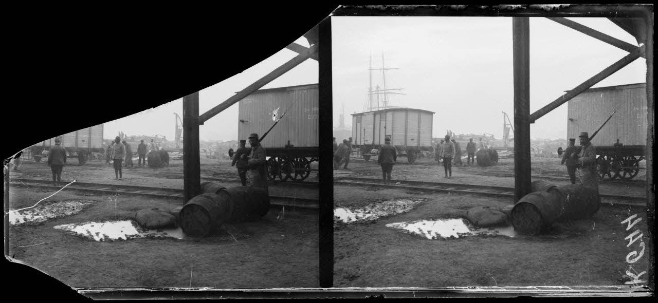 Salonique. Sur les quais. Les monceaux de caisses de munitions.