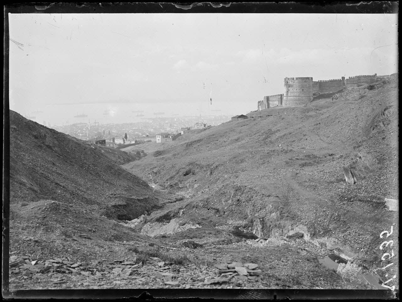 Salonique. Vue prise du fond du ravin passant au pied des murs de la citadelle.