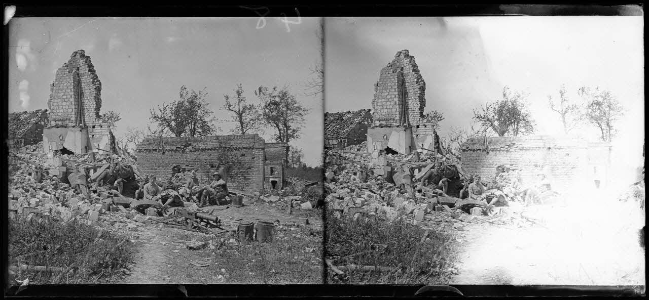 - Dans le village de Rouvrel (Somme, 13/07/1918, V 2891 à V 2895) la totalité des maisons et l'église sont en ruines.