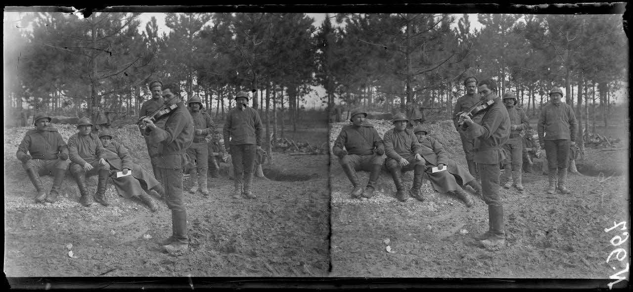 Secteur d'Aubérive (Marne), bivouac du Bois Sacré. Violoniste russe. [légende d'origine]