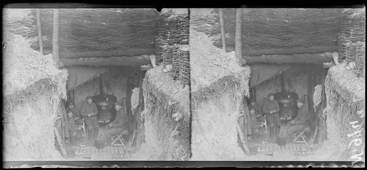 - Dans le secteur de Souain, au PC de l'Etoile, dans le bois de la Chaise, des abris souterrains sont occupés par les soldats. Un guetteur surveille les lignes ennemies.