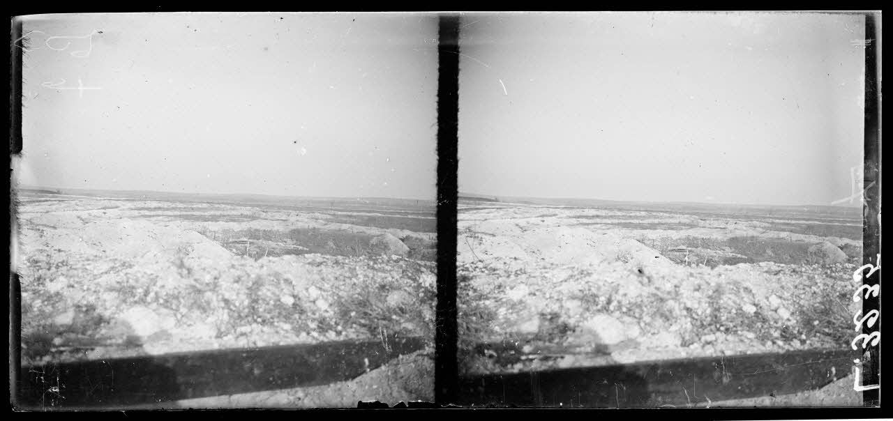 Secteur de la Pompelle (Marne). Vue sur les lignes allemandes. Au fond, le fort de Nogent-l'Abbesse (aux Allemands).