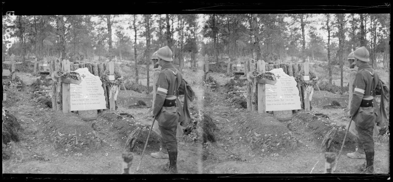 Secteur du bois Bricot (Marne), région de Perthes. Cimetière allemand; un tombeau d'officier. [légende d'origine]
