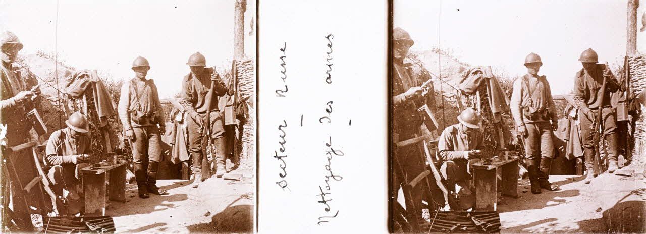 Secteur Russe. Nettoyage des armes. [légende d'origine]