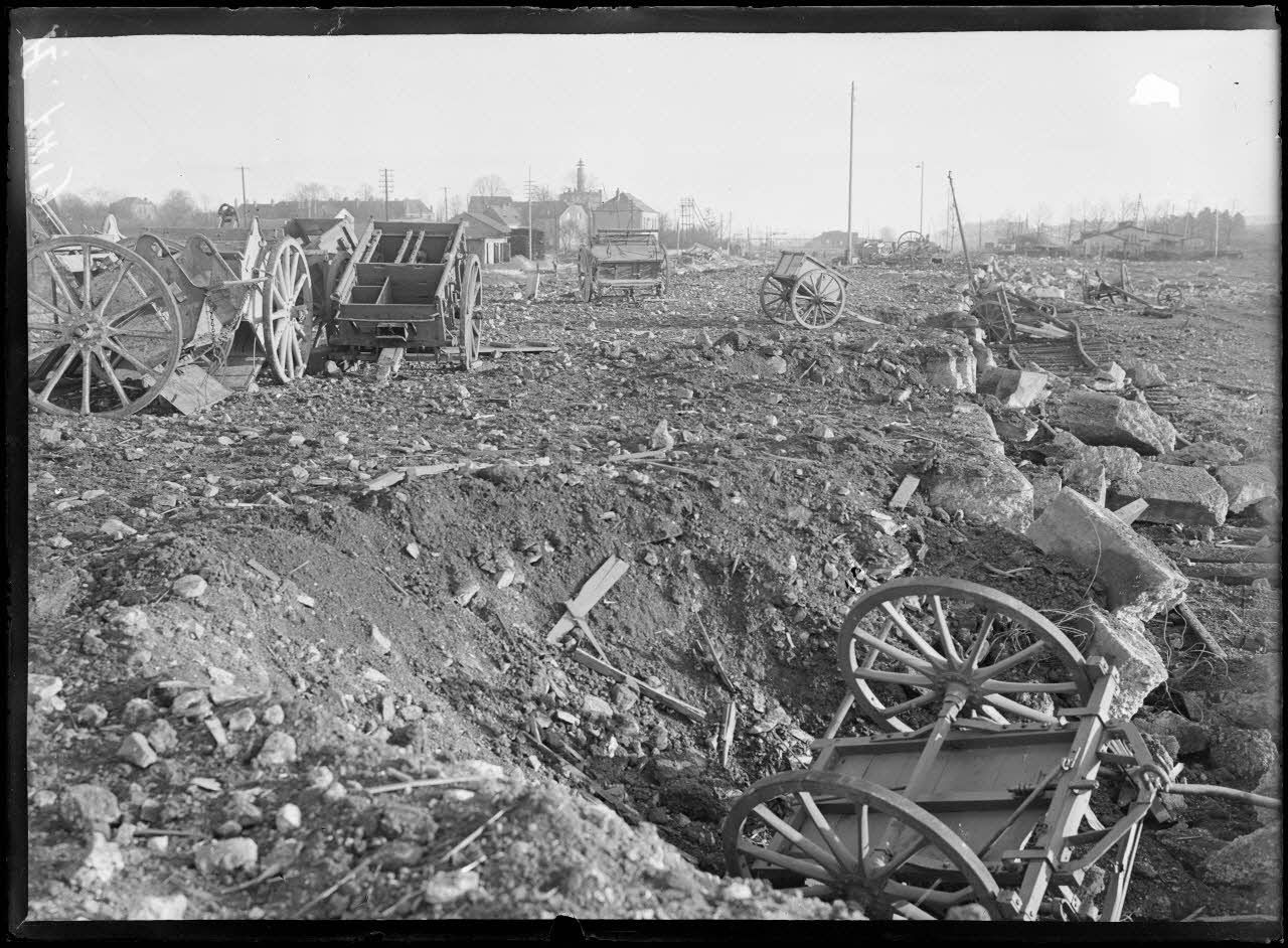 Ruines sur la ligne Metz à Sedan, novembre 1918.
