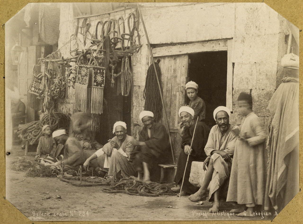 Du 22 mai 1887 au 7 mai 1891, le capitaine Albert d'Amade est nommé attaché militaire à Tien-Tsin auprès de la Légation française de Chine. Il réalise cet album grâce à une collection d'épreuves sur papier albuminé acquises dans le commerce. Cette collection documentaire à caractère touristique sur l'Egypte est composée d'une série de tirages originaux achetés par Albert d'Amade au cours de ses escales. Les photographies appartiennent au corpus de séries commerciales sur l'Orient destinées à la clientèle des voyageurs et réalisées par des praticiens professionnels installés ou de passage en Egypte à partir des années 1870. Pour les photographes qui ont pu être identifiés, on citera les signatures suivantes: Luigi Fiorillo, G. Lékégian & Cie, les frères Zangaki et Hippolyte Arnoux. Cet album fait partie d'un ensemble de dix cahiers réalisés par le général Albert d'Amade au cours de sa mission en Chine entre 1887 et 1891.