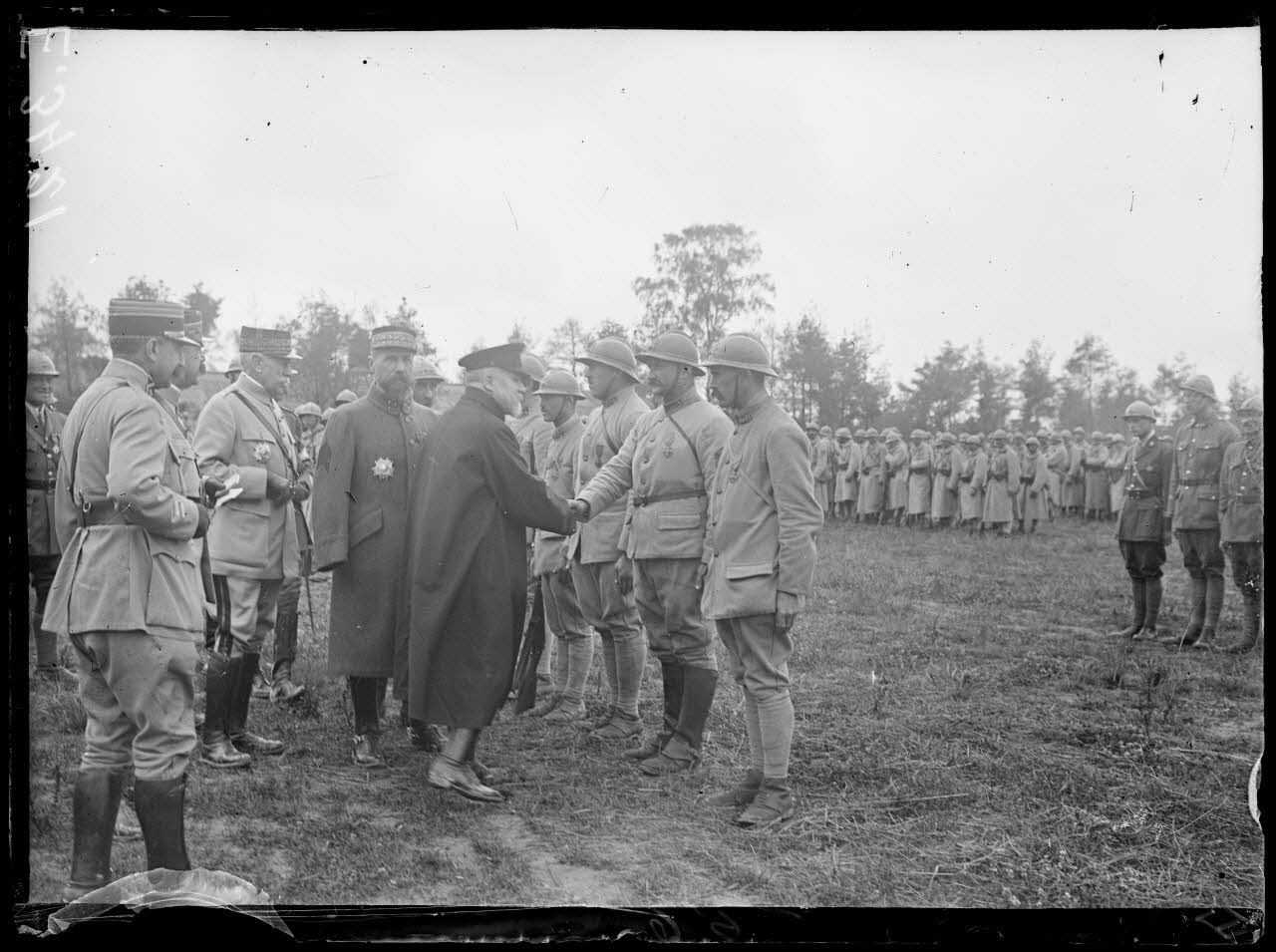 Le 4 août 1918, le président de la République Raymond Poincaré remet des décorations aux 53e et 142e régiment d'infanterie en présence du général Gouraud.