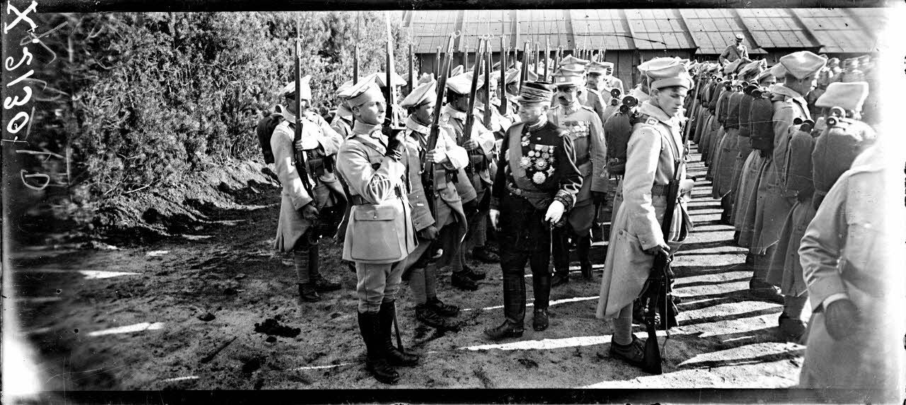Sillé-le-Guillaume (Sarthe), camp du 1er bataillon polonais, revue du 1er bataillon polonais par le général Archinard.