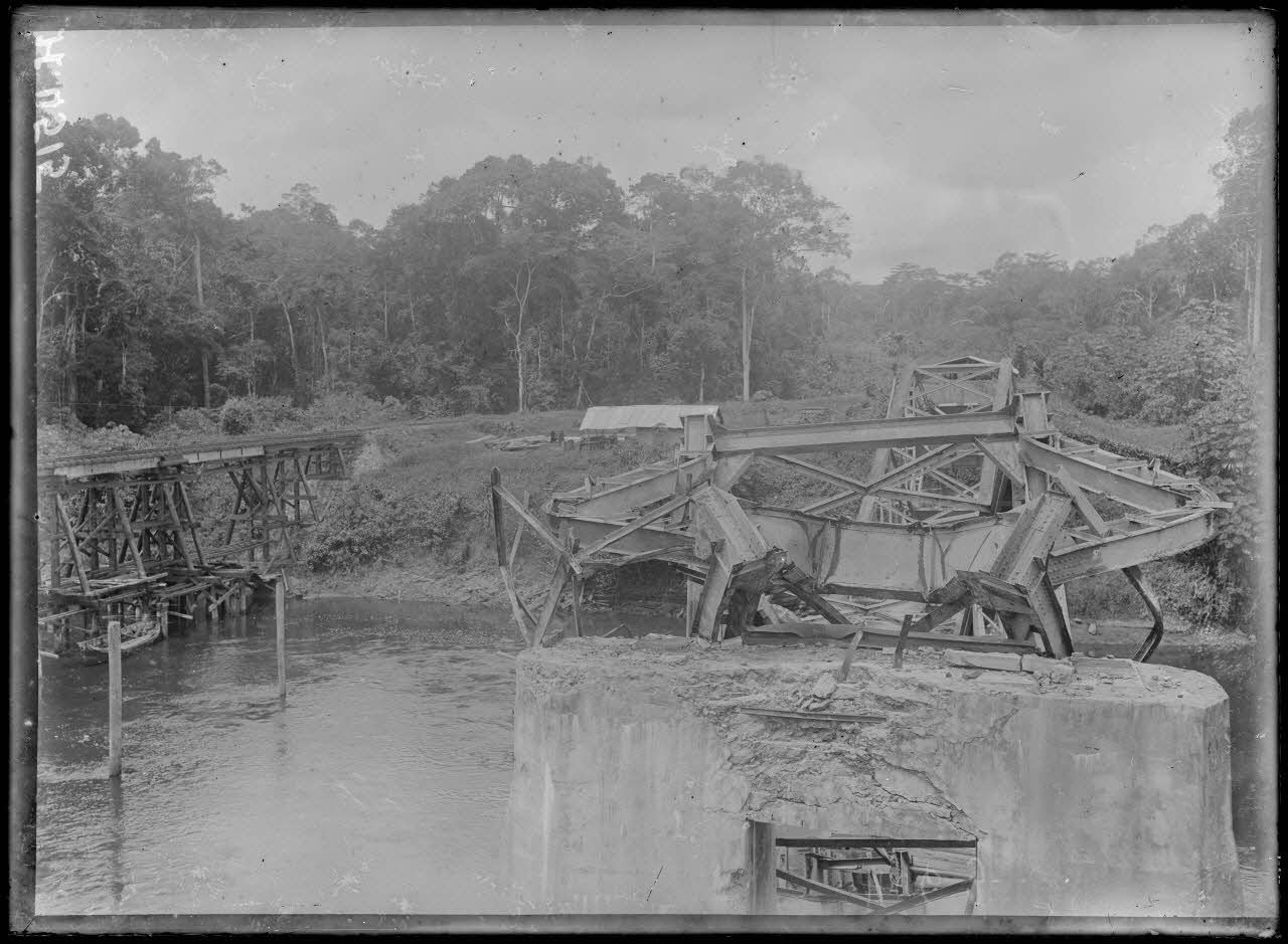 So Dibanga. Ensemble du pont détruit sur la Kélé, de face. [légende d'origine]
