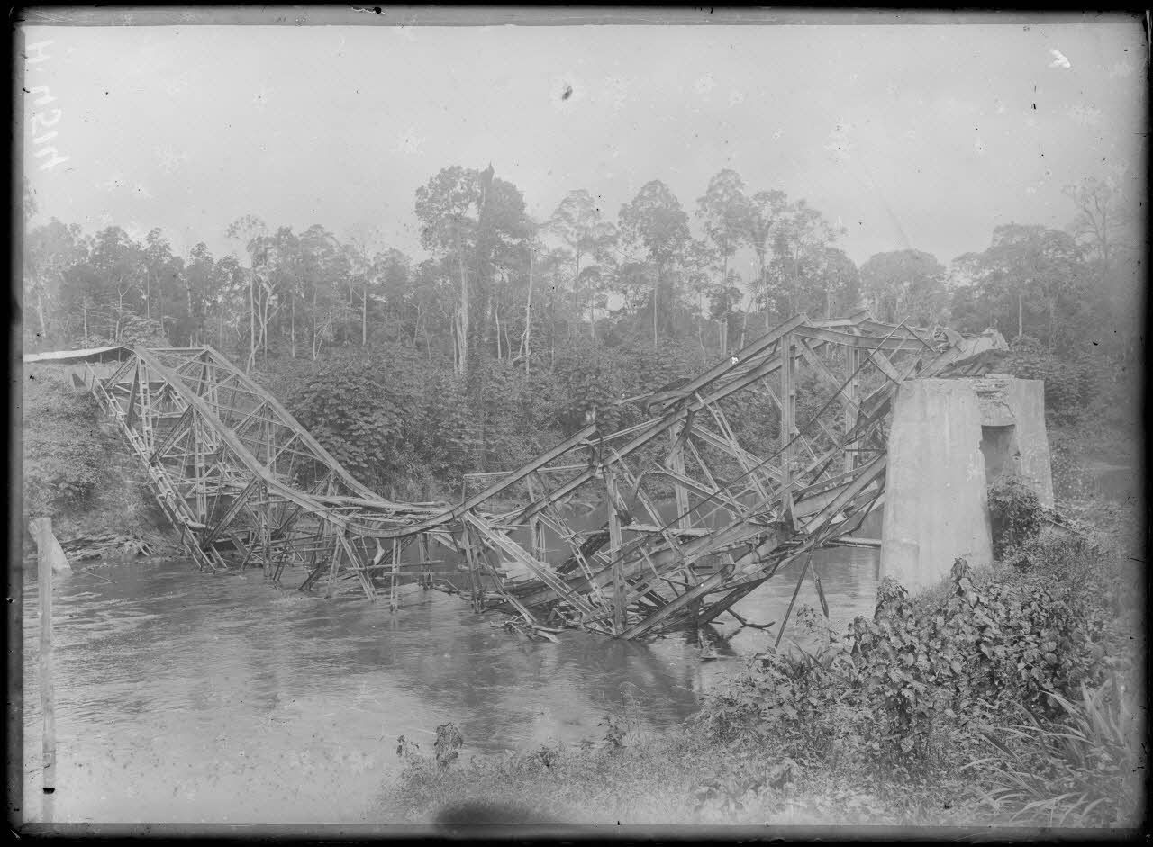 So Dibanga. Ensemble du pont détruit sur la Kélé, rive gauche. [légende d'origine]