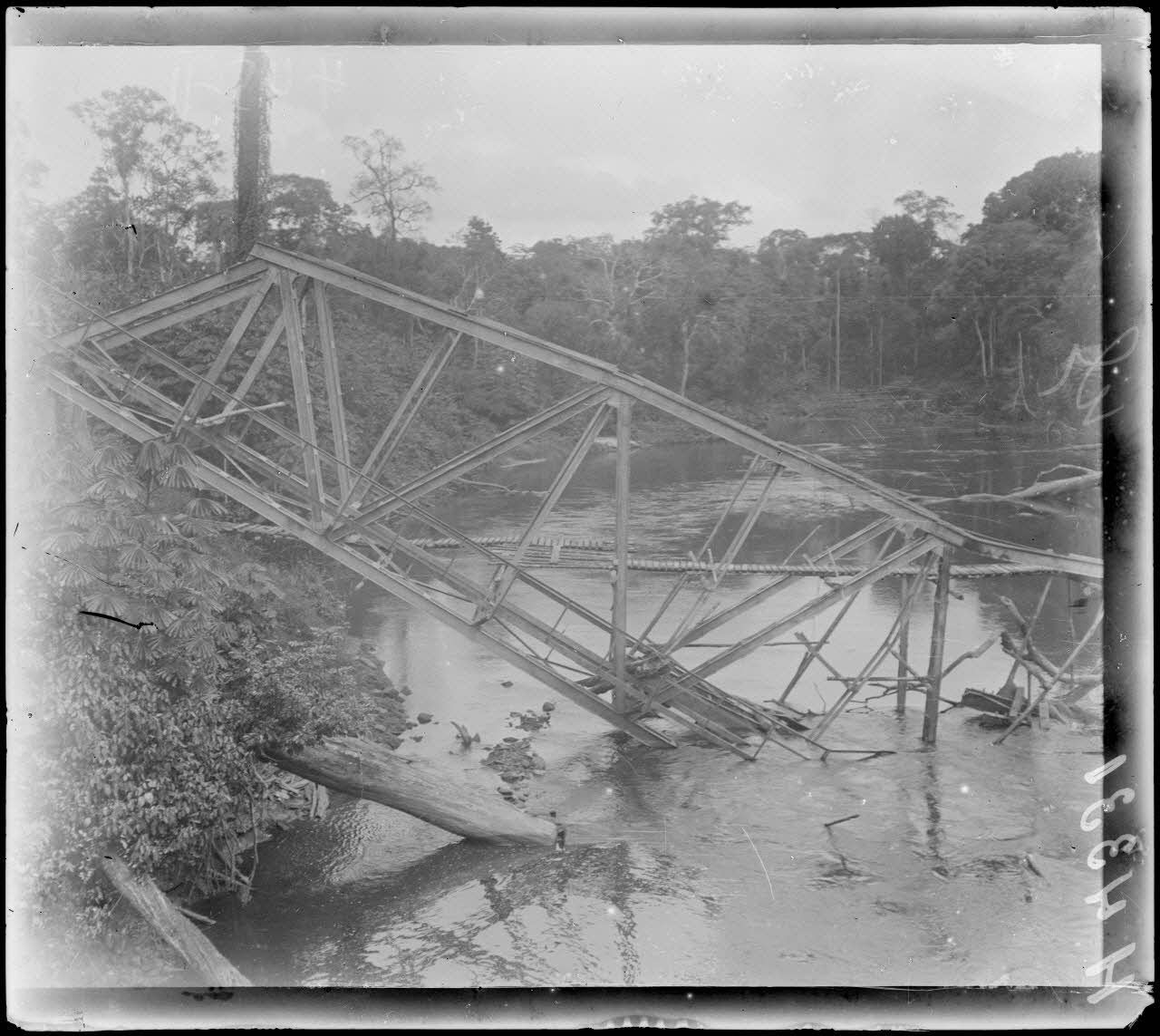 So-Dibanga. Le pont détruit sur la Kélé. [légende d'origine]