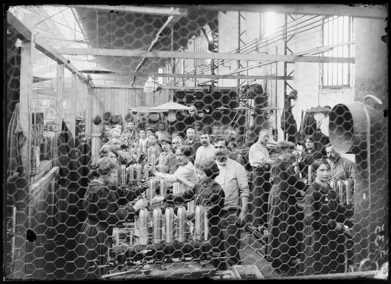 Société Eclairages électriques de Suresnes. Contrôle d'atelier. Vérification des obus de 75 avant présentation des lots à l'artillerie.