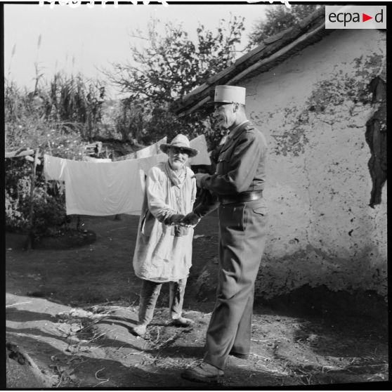 Un musulman serre la main du capitaine de la section administrative spécialisée (SAS) de Zéralda.