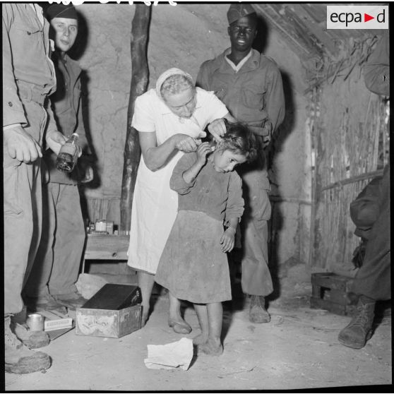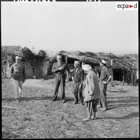Dans un petit village à côté de Zéralda un capitaine et le capitaine de la section administrative spécialisée (SAS) de Zéralda parlent avec un musulman.