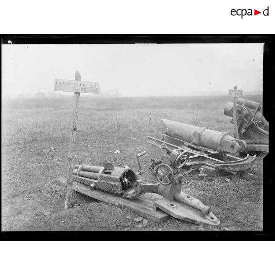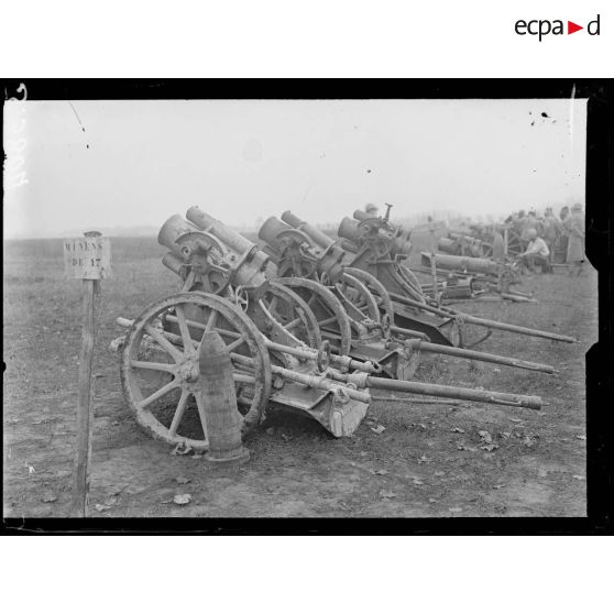 Mercin-Pommiers (Aisne). Le parc des trophées, matériel pris aux allemands.