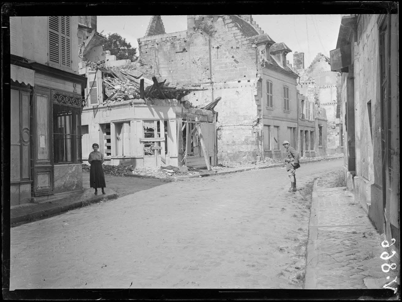 Soissons, le pont Neuf. Au fond, les lignes allemandes.