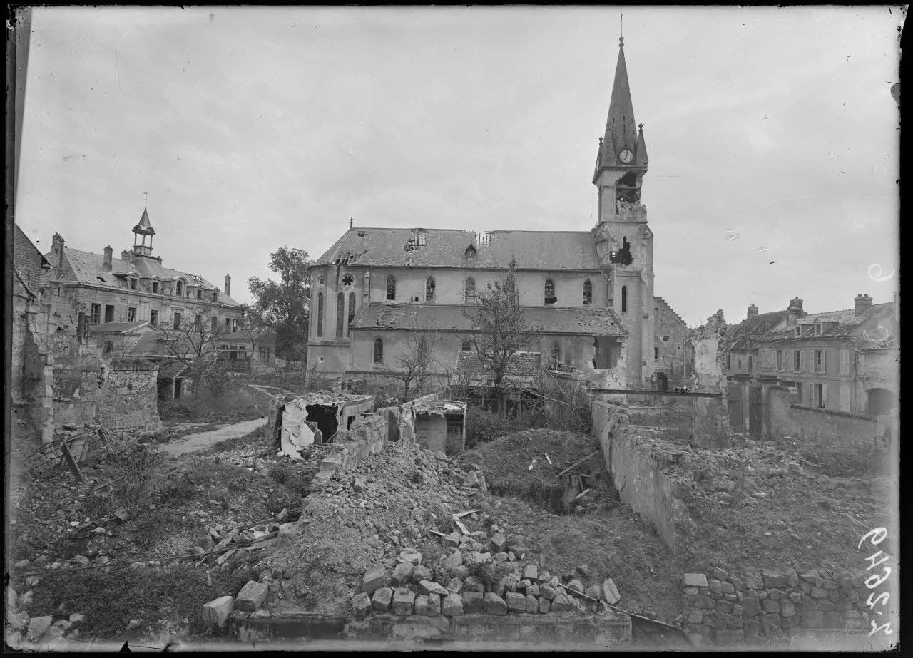 Soissons. Ruines dans le quartier de l'église Saint-Léger.