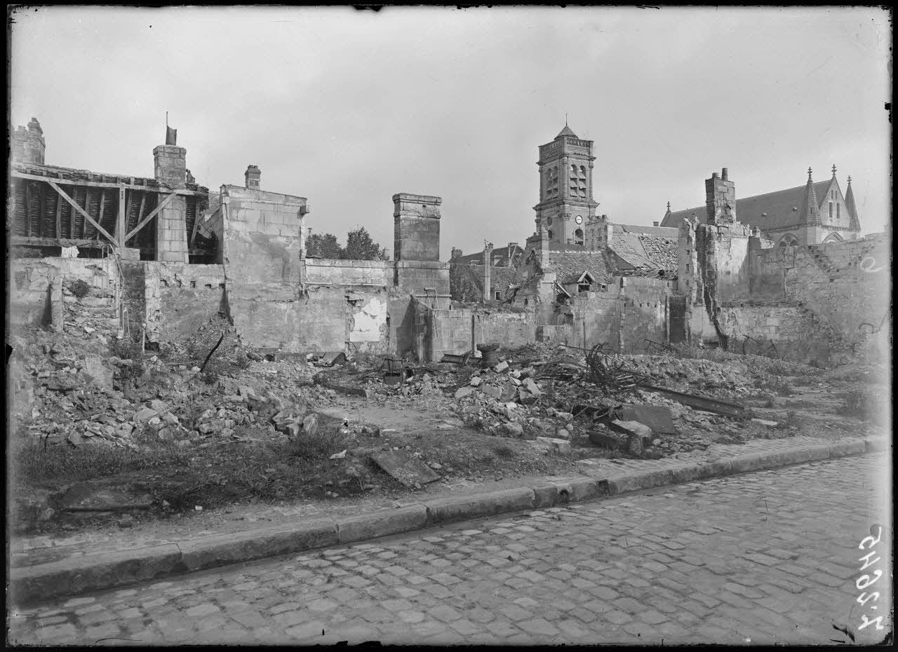 Soissons. Ruines dans le faubourg Saint-Waast. Eglise Saint-Waast.
